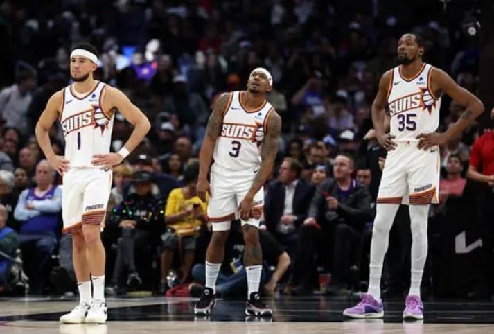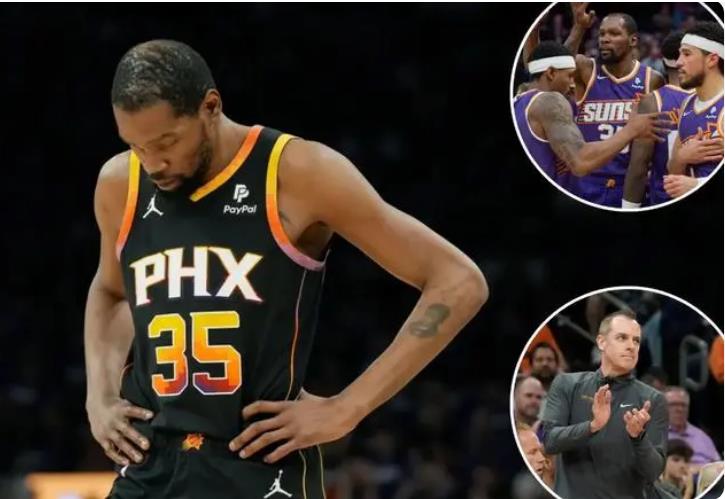 178直播讯 3年内2次遭遇了横扫,36岁的杜兰特正在经历着生涯最为尴尬的时刻,他和布克、比尔在太阳队的三巨头并不成功,而且从赛后杜兰特不满意沃格尔对于自己的定位,比尔不爽沃格尔对于球队球权的分配,尼克斯对于布克垂涎三尺等等情况,休赛期,太阳队三巨头分崩离析是大概率的事情。