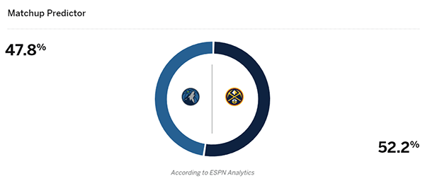 178直播讯 北京时间5月6日,NBA官方正式宣布,爱德华兹在西部半决赛G1中领到的技术犯规被撤销;G2将在后天开打,ESPN预测胜率,看好掘金拿下G2从而扳平大比分。