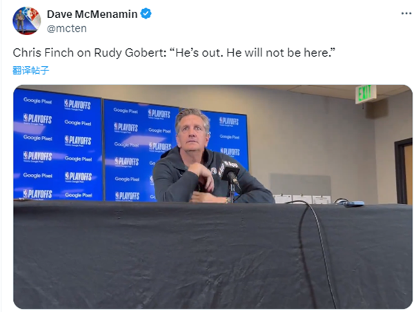西部半决赛G2赛前,戈贝尔缺席了训练,出战状态被列为出战成疑,名记Tim MacMahon报道称,戈贝尔因孩子即将出生而出战成疑,赛前2个多小时,戈贝尔被降级为缺席比赛,目前他不在球队中。