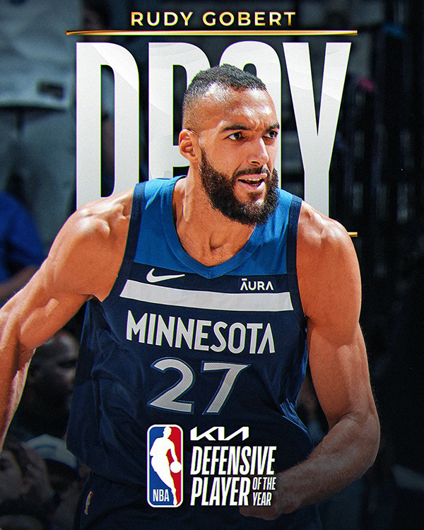 在今年年度最佳防守球员奖项的评选中,戈贝尔获得最多的第一选票,总得分最高,击败文班和阿德巴约两大候选人从而夺得DPOY,荣获奥拉朱旺奖;戈贝尔七年四次夺得DPOY,森林狼官方第一时间祝贺戈贝尔,美媒也纷纷晒海报祝贺他。