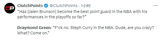 178直播讯 北京时间5月10日,布伦森已经是联盟最好控卫吗?勇士球星追梦格林在节目中爆粗回应此事,追梦激烈表示:TMD,不是!斯蒂芬-库里还在NBA呢兄弟!你疯了吗?啥玩意?别了吧,这太离谱了,库里还在NBA呢,他仍然出色,停止这个说法吧,啥啊这是?卢卡-东契奇也是一个控卫呢。