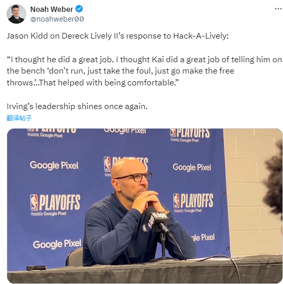 赛后,独行侠主帅基德透露,欧文在赛中告诉新秀莱夫利:不用跑,尽管让他们砍,然后去把球罚进就行了。