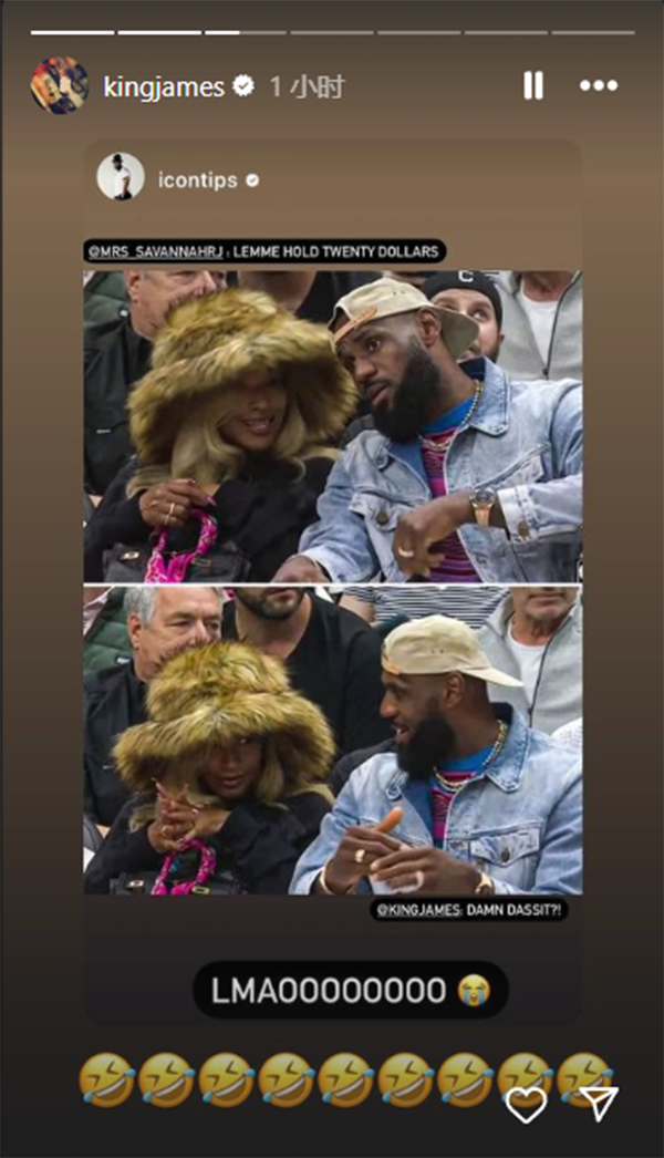 今日詹姆斯转发自己与萨瓦娜一起观战的画面;值得一提的是,里奇-保罗提前告知湖人此事,詹姆斯现身骑士主场的举动被外界视为这是对湖人管理层的施压。