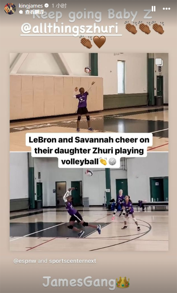 詹姆斯还转发自己观看女儿朱莉打排球,配文写道:继续努力,朱莉宝贝#詹姆斯帮。