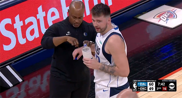 第三节,独行侠多点开花,东契奇命中两记三分,欧文、华盛顿、约什-格林都输送三分,独行侠顶住雷霆的反扑;虽然亚历山大单节独砍14分,但三节打完雷霆仍落后12分;值得一提的是,东契奇的手背被抓破,手背上一摊鲜血,染红战袍,主动下场接受止血治疗,工作人员为他清洗球衣上的血迹。