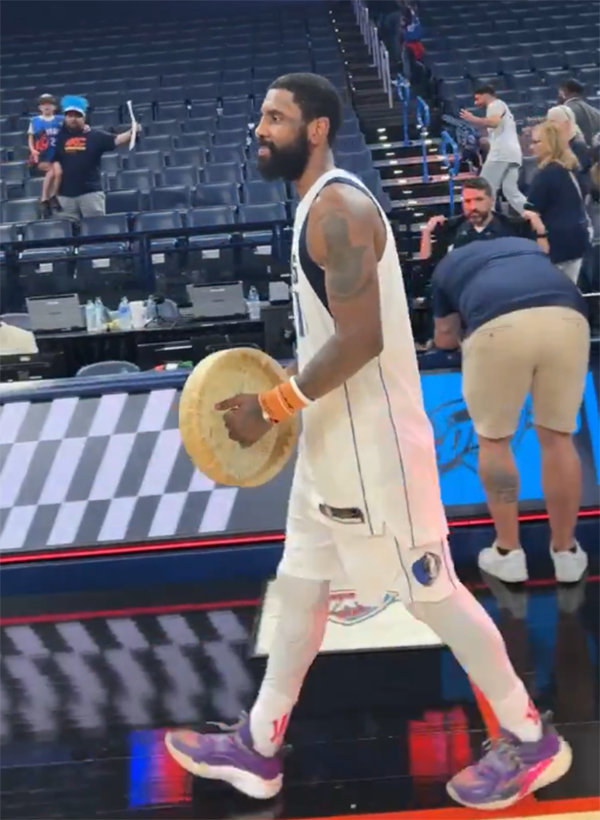 178直播讯 北京时间5月16日,NBA西部半决赛G5,独行侠客场104-92击败雷霆,总分3-2夺得赛点,赛后离场时,现场球迷继续高呼欧文,欧文则是敲鼓庆祝胜利。