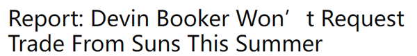 对于布克希望加盟尼克斯的流言,Zach Lowe在节目中表示:我从未听说布克有那样的交易请求,你知道,无论如何,在可预见的未来他都不会申请离队。