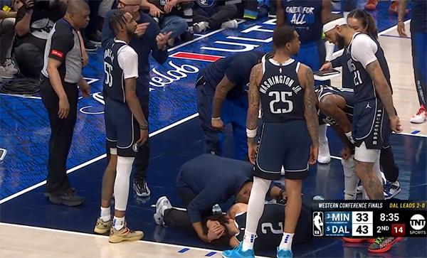 178直播讯 北京时间5月27日,西决G3独行侠新星莱夫利意外受伤,头部被唐斯的膝盖撞到,另外裁判吹罚引争议,唐斯袭裆莱夫利却未吃恶意犯规。