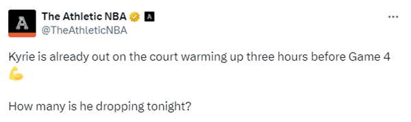 目前独行侠主场已经铺满了欧文左手抛投绝杀掘金的庆祝动作的助威海报,据统计,欧文职业生涯至今,赛点战14胜0负,生涯从未在季后赛输过赛点,今日欧文有望延续不败定律,并且带队夺得西部冠军从而晋级总决赛。