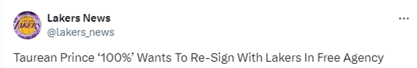 普林斯再次表态今夏第一要务是与湖人续约,不过若其他球队愿意给更大合同,普林斯也会考虑离开湖人。