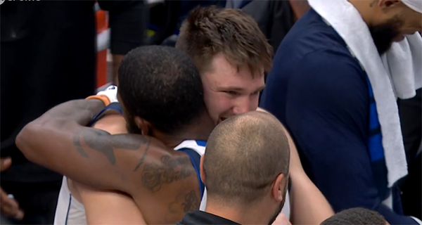 森林狼出局后,唐斯等人与东契奇拥抱,爱德华兹的心情很沮丧,把签名球鞋送给小球迷后径直走回更衣室,拒绝与东契奇、欧文等人拥抱。