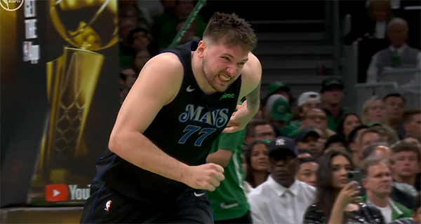 下半场,第三节东契奇中投、突破以及外线接连命中三分,欧文输送火力,东欧带队22-9追到8分,可东契奇明显体力透支,欧文再次打铁以及被布朗大帽,独行侠突然断电,被绿军打出14-0又落后到20分以上,此时镜头拍到东契奇满脸通红以及失落表情。