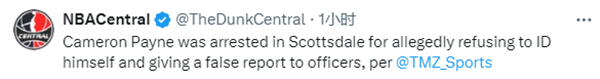 178直播讯 北京时间6月15日,据美媒TMZ报道,当地时间周五早上,76人后卫卡梅隆-佩恩在亚利桑那州被捕,警方声称他向执法人员提供了虚假报告。