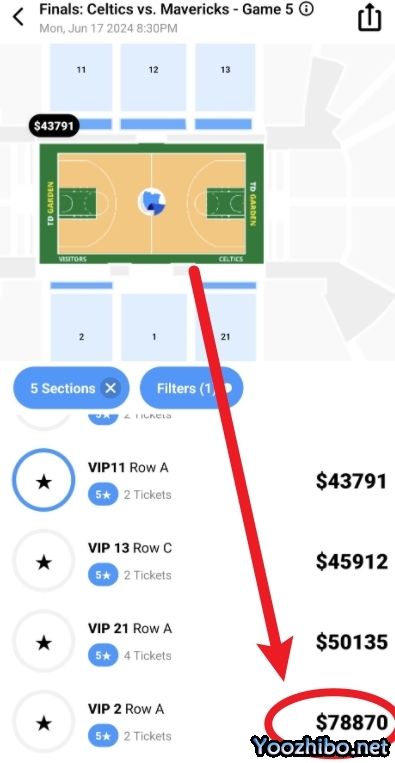 178直播讯 北京时间6月17日,总决赛G5备受关注,凯尔特人主场G5的平均票价为2213美元,场边VIP座位更是卖出天价,一张票售价高达39435美元(折合人民币约为28.6万元)。