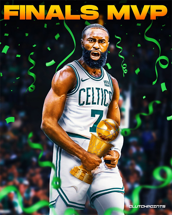 凯尔特人横扫独行侠从而夺得队史第18座总冠军,双探花率队时隔16年再次夺冠,在总冠军颁奖仪式上,布朗力压塔图姆夺得总决赛MVP,布朗首次夺得FMVP(比尔-拉塞尔奖杯)。
