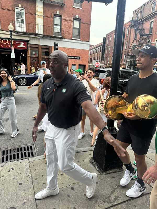 凯尔特人将帅已经返回波士顿,下飞机后马祖拉抱着总冠军奖杯并且开车带走奖杯,谈到在迈阿密庆祝夺冠,马祖拉表示:很有趣,我们玩得很开心,很高兴回到波士顿,感谢这座城市。