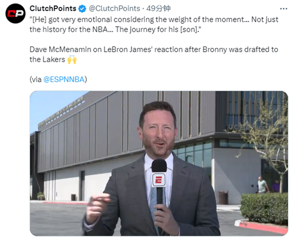 湖人如愿用次轮55号签选中布朗尼,如此以来,詹姆斯和布朗尼成为NBA历史上第一对为同一队效力的父子组合。