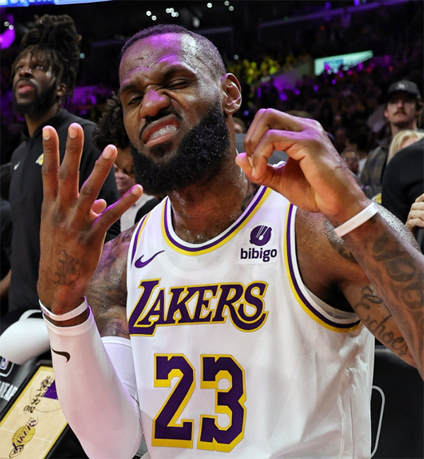 2023-24赛季,39岁的詹姆斯为湖人出战71场常规赛,场均上场35.3分钟,能够拿到25.7分7.3篮板8.3助攻;出战5场季后赛,场均出战40.8分钟能够拿到27.8分6.8篮板8.8助攻;詹姆斯带领湖人夺得史上第一个季中赛冠军且荣膺季中赛MVP,但季后赛首轮被淘汰。