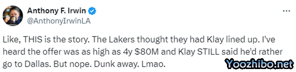 据悉汤普森拒绝了湖人4年8000万合同。