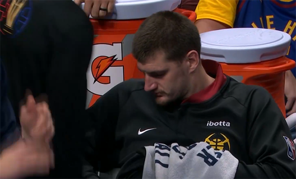 末节独行侠8-2追到9分,布劳恩连得5分稳住局面,8分12秒约基奇重新上场,保护篮板后组织进攻,戈登强吃小哈达威补篮得分,东契奇连中三分,约基奇连续助攻戈登得分,欧文续上三分,约基奇金鸡独立打铁,小波特补篮命中,欧文错失关键上篮,约基奇关键2分,东契奇三分续命,约基奇连续4分杀死比赛,全场球迷高呼MVP,最终掘金拒绝20分逆转,击败独行侠后赛季战绩变成5胜1负。