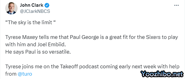 谈到76人新援保罗-乔治,马克西在节目中表示:“得益于他的天赋和技术,乔治可以在任何体系中即插即用。他身材高大,能投篮,能拿到篮板,能传球,有球无球都能打。在联盟最佳球员乔尔-恩比德身边,你得会打无球,而乔治就可以,他还可以带替补阵容。”