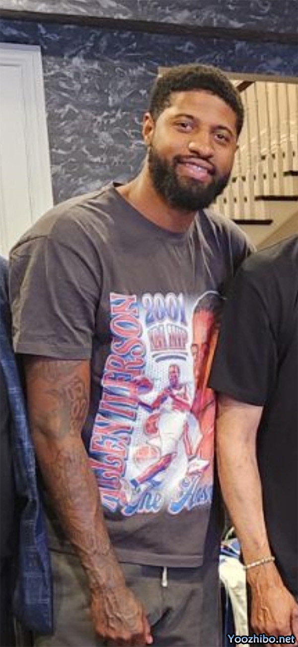 为了与76人会面,乔治不仅身穿印有艾弗森图片的T恤,而且愿意苦苦多等两个小时,因为76人老板约什-哈里斯和76人名宿朱丽叶斯-欧文的私人飞机延误了两个小时,如此种种迹象,可以看出乔治想要加盟76人的决心。