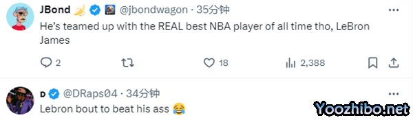 美球迷调侃,他现在和真正的历史最佳球员勒布朗-詹姆斯当队友,勒布朗要揍他了;还有球迷质问他懂球吗?居然说掘金是历史最佳球队。