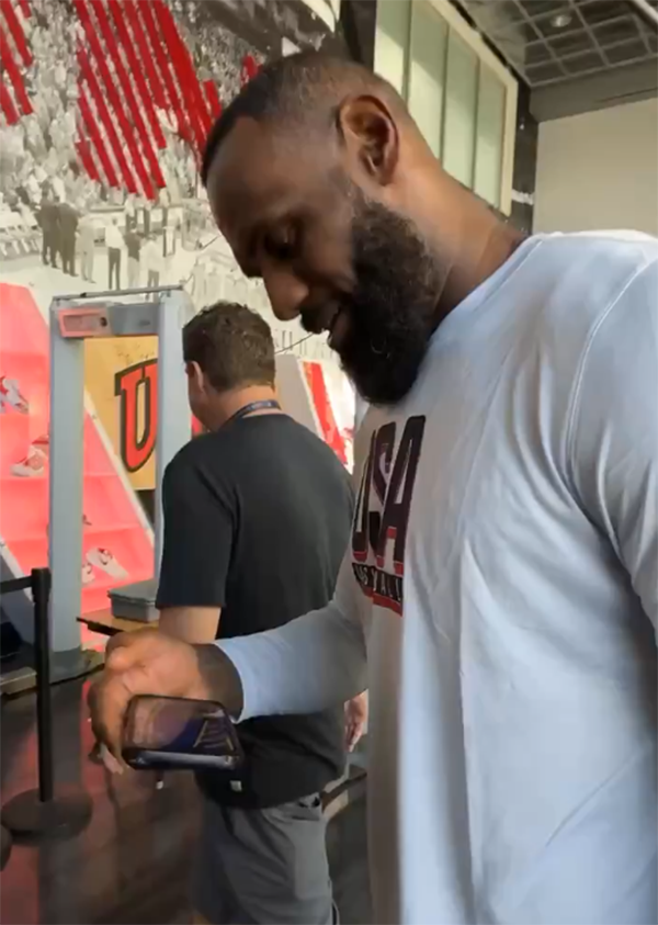 整场比赛,布朗尼仅仅打进两球——第二节5分52秒,布朗尼持球突破上篮拿到湖人生涯首分,看到布朗尼终于得分,正在美国男篮训练营的詹姆斯拿着手机激动发声,表示:“哇哦伙计,这很难,他看起来很放松!”