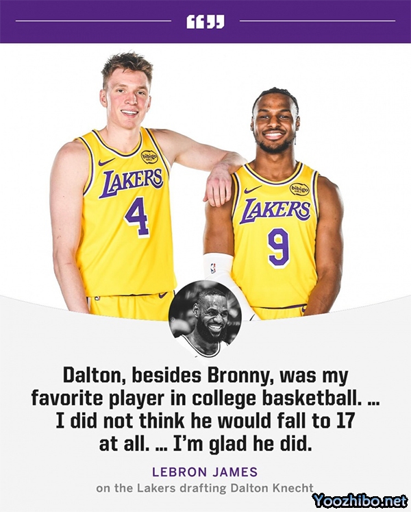 值得一提的是,詹姆斯还盛赞湖人17号秀,公开表示:除了布朗尼,道尔顿(克内克特)是我最喜欢的大学球员,我根本没想到他会跌到第17顺位,我很高兴他来到湖人!