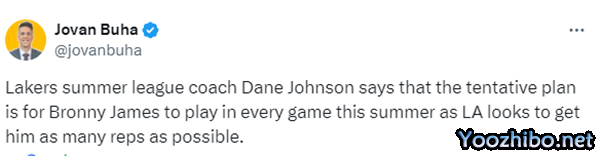湖人队夏季联赛教练丹尼-约翰逊表示,球队的计划是让布朗尼参加今年夏天的每场比赛,因为湖人队希望他获得尽可能多的上场机会。