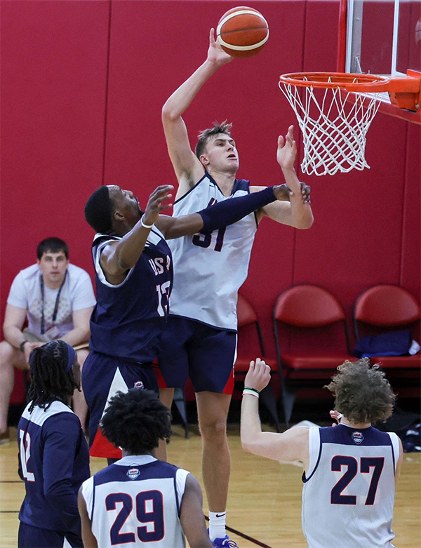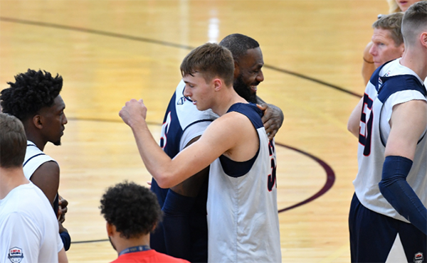 目前弗拉格正以陪练成员的身份与美国男篮众将一起训练,在今天陪练队1分惜败美国男篮的实战中,弗拉格大杀四方,迎着浓眉命中三分,防守端送出大帽,空切冲击并且迎着阿德巴约把球打进;弗拉格天赋异禀,而且他才17岁,他将在新赛季代表杜克大学男篮出战NCAA。