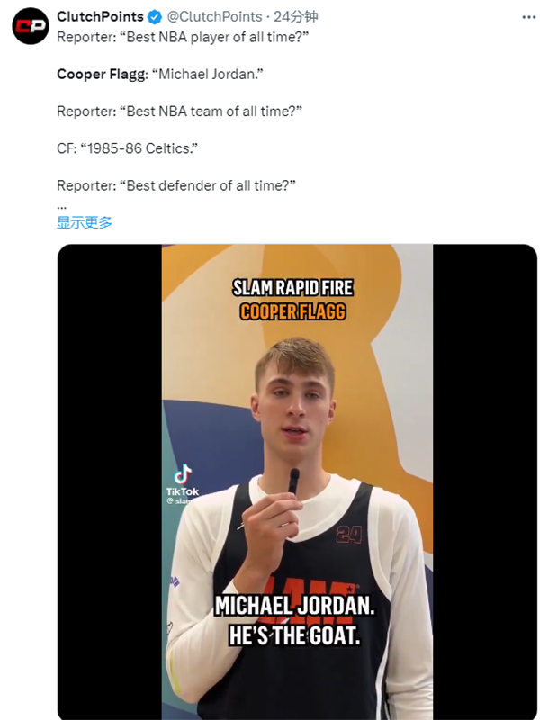 接受美媒《SLAM》杂志采访,进行快问快答时,弗拉格的回答引热议——