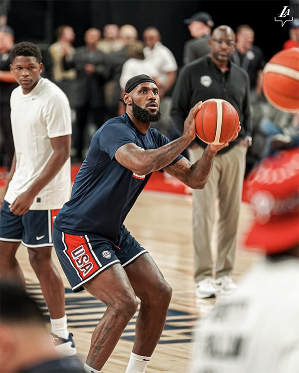 39岁的詹姆斯穿着拖鞋、卷着裤腿、提着球鞋和保温杯轻松入场;库里穿着短裤短袖、背着双肩包戴着渔夫帽,整个人的状态也十分放松;布克、爱德华兹、哈利伯顿、恩比德等人都戴着耳机走进球馆;杜兰特身穿美国男篮外套,小帅的气质仍旧独一档。