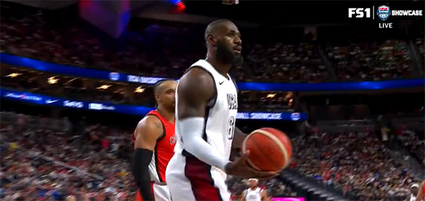 178直播讯 北京时间7月11日,美国男篮和加拿大男篮迎来一场热身赛,美国男篮1-11开场太扎心,首发五虎首节仅4分,詹姆斯遭挑衅后推搡狄龙;美国全队单节8次失误,第一节打得太糟糕了。