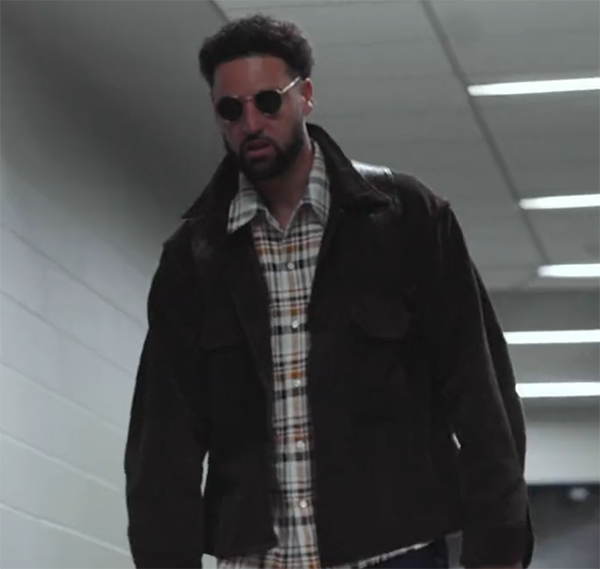 追梦格林戴着墨镜、身穿绿色卫衣来到球馆,保罗面带笑容,戴着一顶十分抢镜的小绿帽;汤普森背着双肩包,格子衫搭配外套和墨镜,克莱这穿着也挺帅气的。