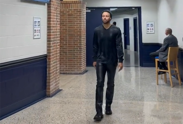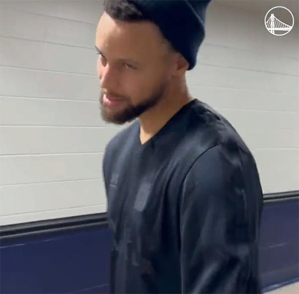 勇士将在季中锦标赛揭幕日客场对阵雷霆,赛前,库里身穿黑色皮裤、戴着黑色针织帽,直言感到很兴奋,库里还冲着镜头做出经典的歪头杀动作。