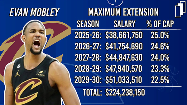 178直播讯 北京时间7月21日,据ESPN名记woj报道,经纪人透露,克利夫兰骑士队前锋埃文-莫布利已经同意续签一份为期五年、最高价值 2.24 亿美元的提前续约合同,这份合同的价值最高可能达到 2.69 亿美元。