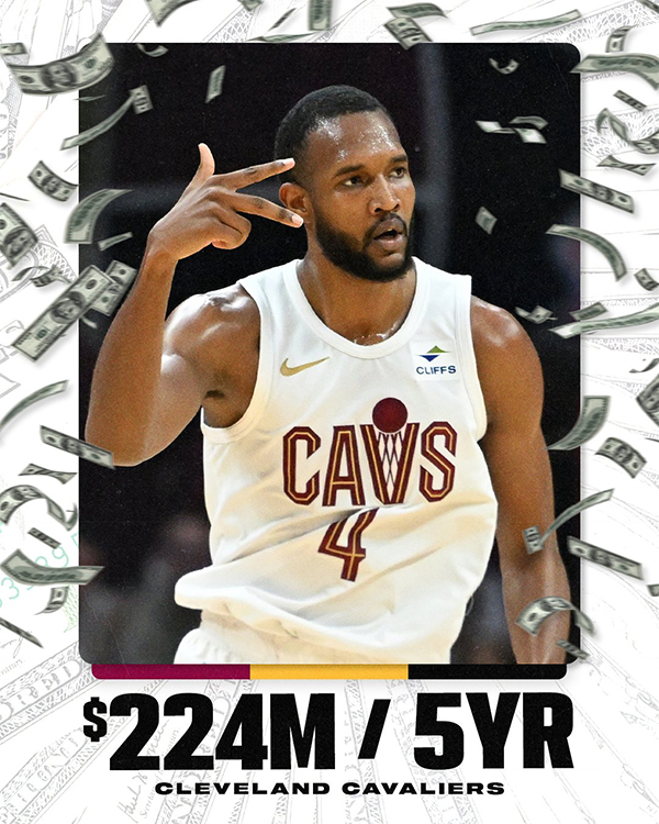 莫布利合同细节报道曝光——25-26赛季年薪3866万美元,26-27赛季4175万美元;27-28赛季年薪4484万美元;28-29赛季4797万 美元和29-30赛季5103万美元。
