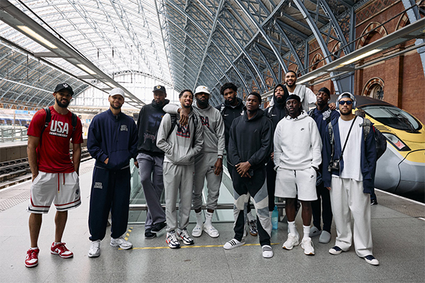 今日,美国男篮离开伦敦并且抵达法国,众球员在法国车站合影留念——詹姆斯站在C位搂着哈利伯顿,后者满脸笑容十分抢镜;杜兰特满脸酷酷的表情,库里双手抄兜十分轻松,怀特身穿美国队红色T恤,站在边上仍十分抢镜。