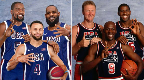 詹杜库效仿乔丹、伯德和魔术师拍摄合影,库里表示:我、杜兰特和勒布朗拍的照片和MJ、拉里-伯德和魔术师约翰逊在1992年奥运会上拍的照片是一样的。我迫不及待地想把它贴在墙上,让他们签名。知道我们在职业生涯中所做的一切是一种荣誉。