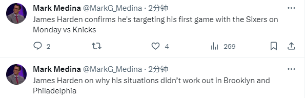 谈到自己的复出时间,哈登表示:我今天的训练感觉非常好,明天将继续进行训练,我计划在周二客场对阵尼克斯的比赛中完成首秀。
