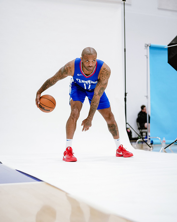PJ-塔克和哈登一起拍摄定妆照,单手转球以及运球拍照,整个过程中,塔克都是一脸严肃的表情,凸显硬汉形象;塔克已经打过了快船生涯首秀,上一次洛城德比,快船加时惨遭湖人逆转,塔克替补上场21分钟,1投0中0分5篮板0助攻0抢断1盖帽。