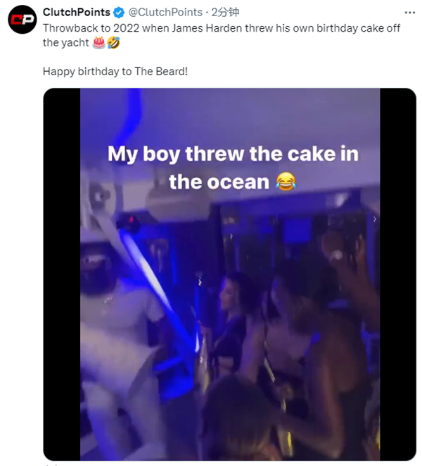 178直播讯 北京时间8月27日,快船球星詹姆斯-哈登迎来35岁生日,NBA官方、快船官方祝贺哈登,美媒也刷屏祝贺登哥,ClutchPoints调侃2年前哈登在生日派对上把蛋糕扔进大海。