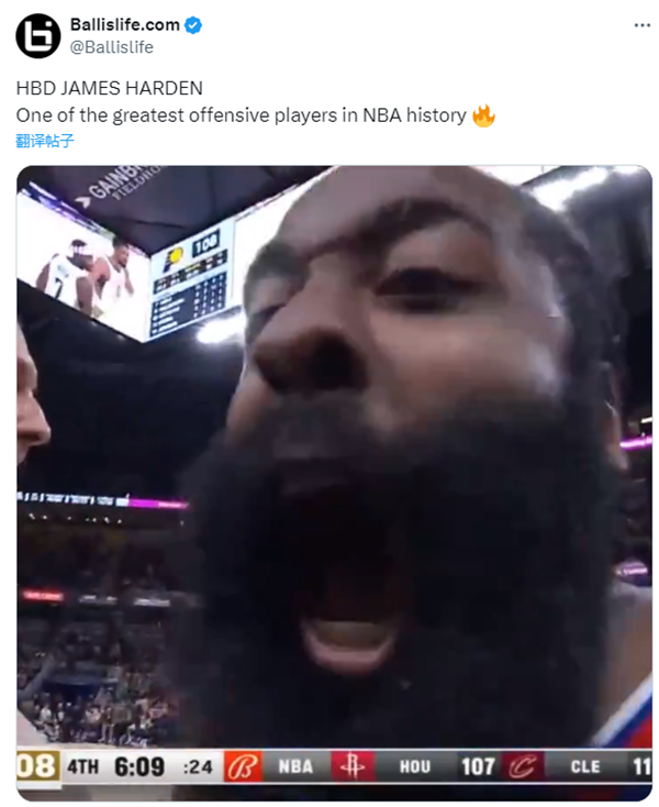 美媒Ballislife更新动态,晒出哈登身穿快船战袍达成3+1的精彩时刻,为其送上生日祝福并配文写道:祝哈登生日快乐!NBA史上最伟大的进攻球员之一。