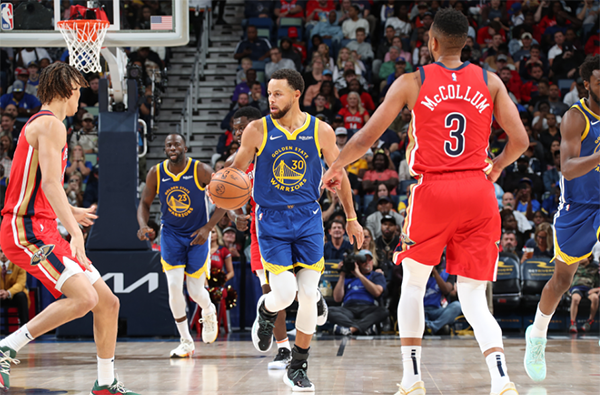 与鹈鹕一战,库里早早开启得分模式,第一节外线火力全开,无视防守连中三分太疯狂,再加上杀到禁区得分以及造犯规罚球得分,单节7投5中独砍16分。
