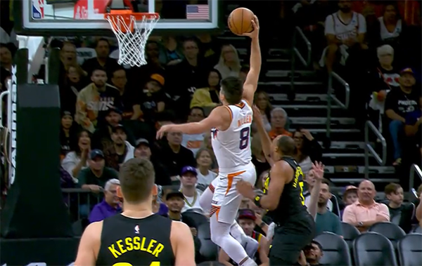 塔克这一次犯规动作有可能导致对手受伤,裁判多次回放之后,升级判罚,塔克吃到一级恶意犯规,对此塔克坐在替补席无奈摇头;太阳获得两罚一掷,太阳继续扩大领先,期间阿伦终于成功暴扣。