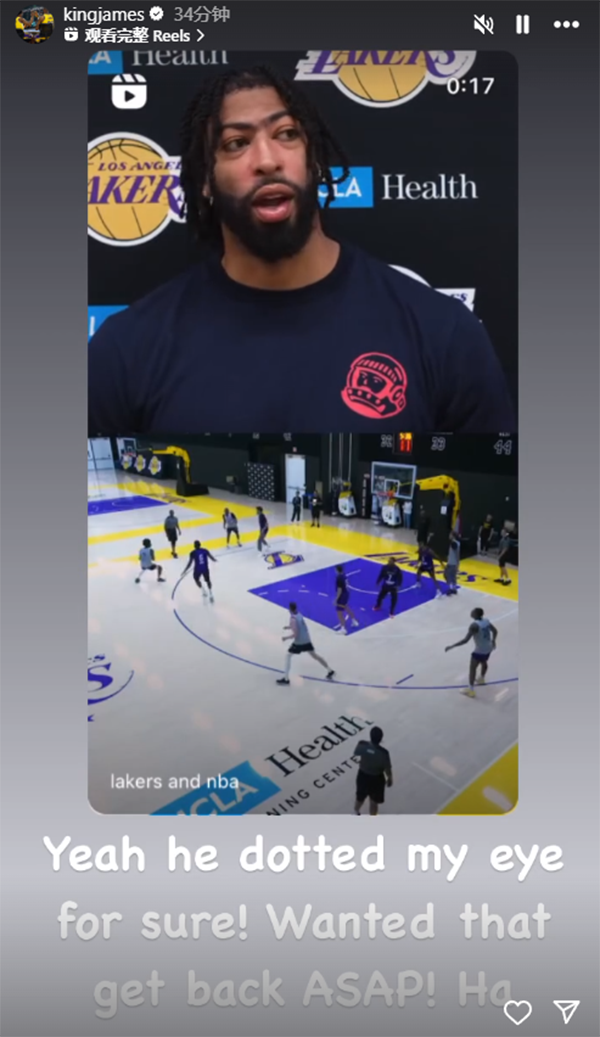 詹姆斯转发湖人社媒动态并且配文写道:是的,他肯定瞪了我一眼!希望尽快回归!哈。