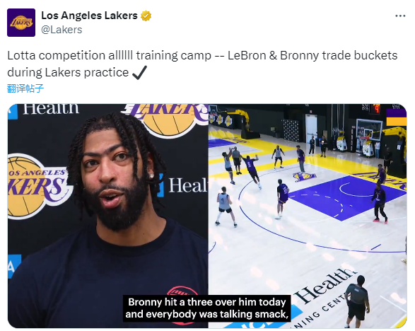 178直播讯北京时间10月21日,湖人官方曝光詹姆斯父子同场竞争的现场画面,配文写道:詹姆斯和布朗尼在训练营中竞争激烈;老詹转发承认并且透露当时布朗尼瞪了他一眼;另外浓眉已经准备好了当湖人领袖,他的目标是统治每一场比赛。