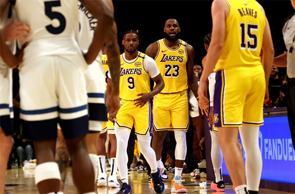 NBA新赛季正式开打,湖人揭幕战主场击败森林狼,上半场比赛还剩4分钟,詹姆斯和布朗尼同时登场,父子组合首次同台创造历史,他们并肩作战2分41秒,布朗尼2投0中一分未得,期间老詹与队友完成空切暴扣;下半场布朗尼没有获得上场机会,最终湖人拿下比赛,詹姆斯全场16中7,三分4中1得到16分5篮板4助攻2盖帽。