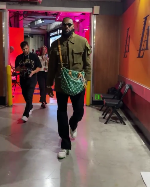 湖人和太阳大战之前,詹姆斯身穿军绿色外套、戴着墨镜以及斜挎名包、单手抄兜入场,快速走进湖人球馆,距离比赛开打还有4个多小时,詹姆斯提前来到球馆,之后他将热身备战本场焦点对决。